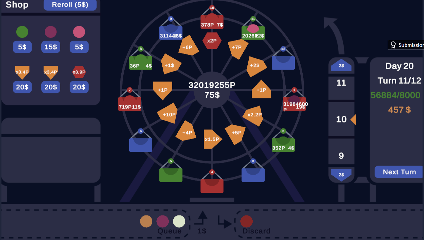 I think if you add a flat 1 extra turn to each day, it'd be so much easier. There's just not enough spins per day to really get any build rolling.